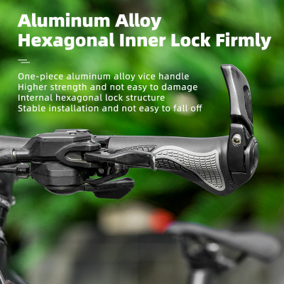 روكبروس مقبض للدراجة الجبلية بآلة تنبيه, مقبض صغير، مقبض يدوي للدراجة، مضاد للصدمات، مقاوم للغبار، مقبض مطاط، بقفل من الجهتين، مقبض دراجة